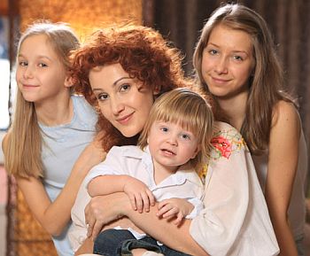 | От первого мужа режиссера Семена Горова у Снежаны две дочери — Александра (слева) и Анастасия, от Антона Мухарского — Андрей (на руках) и Аринка-Мандаринка (за кадром) |