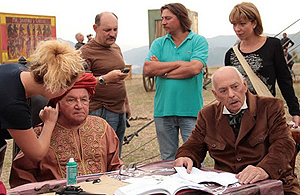 | Анатолий Равикович (справа) со Львом Дуровым и другими на съемках картины «Не бойся, я с тобой-2», выход которой запланирован на 2013 год |
