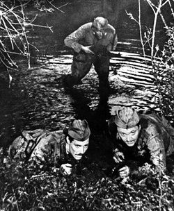 Оказалось, что машина погрузилась в ил - в этом месте было слабое течение, поэтому его скопилось метра полтора и был он твердым, как камень. Ребята-каскадеры потом рассказывали, что не могли вылезти через окна, в которых не было стекол, - их вынули еще до съемки в целях безопасности. Поначалу они подумали, что машина упала набок, но со стороны другого окна все было точно так же. Каскадерам пришлось буквально пробивать ил. Первый вынырнул - я потом по съемке посмотрел - секунд через 40, но нам они показались часами - так сильно мы переживали. А на следующий день еще и краном вытаскивали «студебеккер», не могли же мы оставить в реке имущество «Мосфильма».