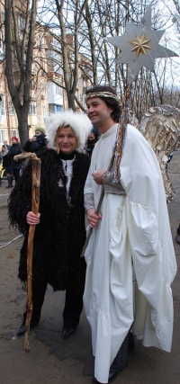 | С Ириной Геращенко под стенами Лукьяновского СИЗО в Киеве во время «Звездного вертепа», организованного творческим объединением «Последняя баррикада» и друзьями заключенного Юрия Луценко, 13 января 2012 года |
