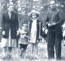 | Савва с матерью Бенедиктой (Басей) Соломоновной, сестрой Татьяной и отцом Виктором Савельевичем, середина 30-х. Виктор Савельевич Крамаров был видным московским адвокатом, в 1938 году его деятельность была расценена как антисоветская. Под пытками он подписал признание и получил восемь лет лагерей. В 1949 сел снова — в рамках борьбы с космополитизмом. Через некоторое время из лагеря пришло письмо, в котором сообщалось о самоубийстве Виктора Крамарова. Мать не верила в самоубийство мужа и была убеждена, что его убили. На нервной почве Бася Соломоновна попала в больницу и в этом же 1949-м скоропостижно скончалась |