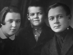 | Миша с родителями — Ефросиньей Кондратьевной Глузской и Андреем Михайловичем Гмыревым, 1922 год. «Глузский очень любил Киев, где прошло его детство, и часами мог о нем рассказывать» |