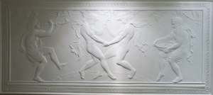 | Такими гипсовыми барельефами и мозаиками из перламутра с золотой крошкой украшен весь подземный ход из физкультурно-оздоровительного корпуса (ФОКа) в «Хонку». В отличие от них полотно Василия Поленова «Христос и грешница», купленное в 2011 году на аукционе в Лондоне за 6,4 миллиона долларов, хозяин не оценил, поэтому шедевру, который выставлялся в Третьяковке, достался в переходе самый темный угол |