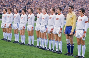 | Сборная СССР по футболу: Владимир Мунтян, Владимир Трошкин, Владимир Онищенко, Евгений Ловчев, Виктор Звягинцев, Леонид Буряк, Олег Блохин, Владимир Веремеев, Анатолий Коньков, Евгений Рудаков и капитан команды Михаил Фоменко, 1976 год |