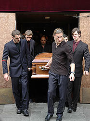 ![]() Хоронить Айзеншписа собрался весь эстрадный бомонд Москвы. На снимке: Борис Краснов, Юрий Антонов и другие |