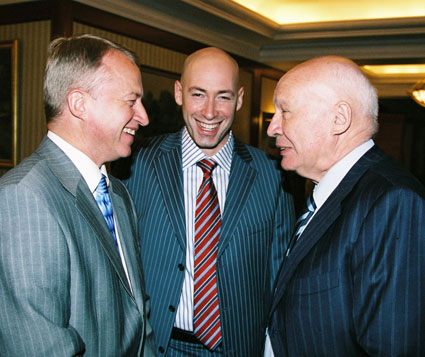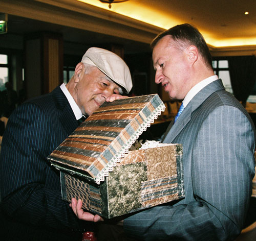 Немало красивых и правильных слов рвалось из уст гостей, прибывших засвидетельствовать... Вот только виновник торжества, как мы еще раз убедились, категорически не выносит пафоса и высокого штиля. Он непрестанно шутил и иронизировал над собой, по-гусарски опускался на колено перед оперной примадонной Евгенией Мирошниченко, надевал кепку козырьком назад - наперегонки с картузоносцем Поярковым... Неудивительно, что праздник, несмотря на обилие vip-персон, получился по-домашнему теплым и милым.