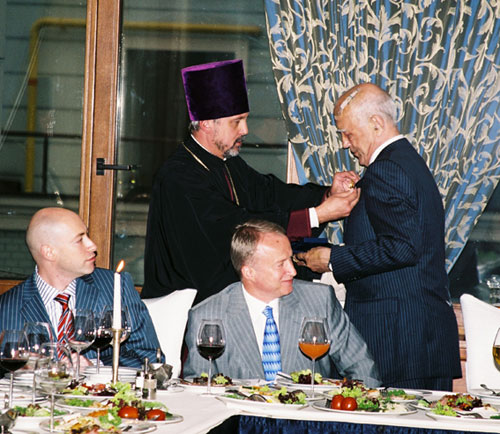 Впрочем, в этот вечер все стихи, проза и, естественно, тосты были адресованы сами знаете кому. И каждый гость старался Виталия Алексеевича удивить. Даже игуменья одесского Свято-Архангело-Михайловского монастыря матушка Серафима. Благостно пропев: "Сповiдаюся!", она рассказала, как в 17 лет ушла в монастырь, но даже там, оказывается, в то время выписывали "Огонек", который она "читала от слова до слова под кроватью". Растроганная воспоминаниями, матушка вместе с секретарем Киевской митрополии Украинской православной церкви протоиереем Виталием Косовским вручили юбиляру орден Cвятого равноапостольного князя Владимира I степени. Увы, Блаженнейший митрополит Киевский и всея Украины Владимир не смог этого сделать лично, поскольку он, ровесник Коротича, отметив свое 70-летие, отбыл на лечение в Баден-Баден.