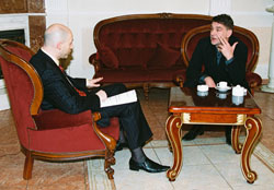 ![]() Сергей Маковецкий — Дмитрию Гордону: «Как бы там ни было, но Киев для меня что-то родное. Iнодi здається, що я пiдзабув мову, але iз задоволенням нею спiлкуюся» Фото Александра ЛАЗАРЕНКО |