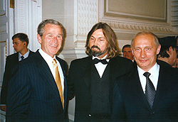 — Я видел фото, где вы увековечены между двух президентов: слева Буш, справа Путин. Какова, любопытно, история этого снимка?