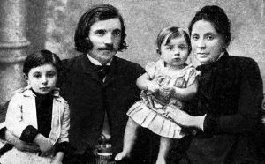 ![]() Шолом-Алейхем с женой Ольгой и детьми. Дочь богатого предпринимателя Голдэ (Ольга) Лоева вышла замуж за бедного учителя и начинающего писателя вопреки воле отца, родила шестерых детей. После смерти тестя Шолом-Алейхем получил огромное наследство, которым, к сожалению, не сумел правильно распорядиться |