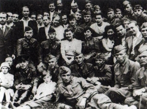 | После концерта в Четвертом полку аэростатов заграждения противовоздушной обороны Ленинградского воздушного флота (Клавдия в центре в белой блузке), август 1941 года. Во время блокады Ленинграда Шульженко дала более 500 концертов для солдат |