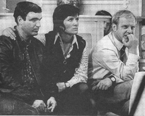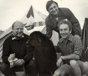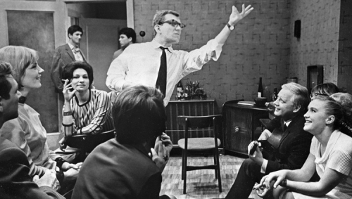 | Сцена из фильма Марлена Хуциева «Июльский дождь» (1966 год). В центре — Александр Митта (Владик), слева — Александр Белявский (Володя) и Евгения Уралова (Лена), справа — Юрий Визбор (Алик) |