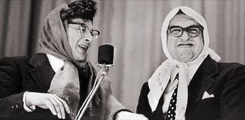 | Вадим Тонков (Вероника Маврикиевна) и Борис Владимиров (Авдотья Никитична). «Получалось у них замечательно, их сразу заметили, начали приглашать на разные вечера. Все было прекрасно до того момента, пока Борис не начал закладывать за воротник» |