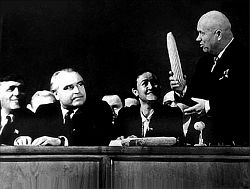 ![]() Сергей Хрущев утверждает, что никто не видел, как его отец стучал башмаком о трибуну ООН. Фотодокументы свидетельствуют обратное |