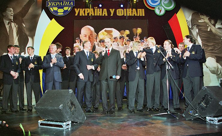 сборная Украины во главе с Григорием Суркисом и Олегом Блохиным