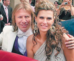 Торжество прошло по всем канонам гламура. Жених — весь в белом, невеста — в белоснежном платье и с бриллиантовой диадемой на голове. От загса до ресторана молодые добирались на раритетном авто, принадлежавшем первому канцлеру Германии, а потом — на яхте, украшенной цветами.