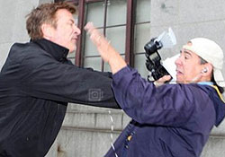 54-летний Болдуин и его невеста - 28-летняя инструктор по йоге Хилария Томас - выходили из здания, где оформляли необходимые для бракосочетания документы, и неожиданно для себя столкнулись с толпой фотографов. По словам свидетелей, Алек пришел в бешенство и набросился на близстоящего человека с объективом. Им оказался фотокорреспондент The New York Daily News Маркус Сантос, которого суперстар не только оттолкнул, но и ударил по лицу. Маркус уже подал соответствующее заявление в полицию. «С этим парнем что-то явно не так! - комментирует инцидент с кинозвездой фотожурналист. - Это был взрыв ярости. Он понесся на меня, словно бешеный бык!».
