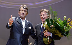Нынешняя "Молодость" началась новой картиной Романа Полански "Оливер Твист". Перед показом господин Полански лично предстал перед почтенной публикой, дабы принять из рук Виктора Ющенко "Скифского оленя" "за вагомий внесок в кiномистецтво".