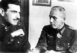 | Льву Копелеву, великолепно знавшему немецкий, на фронте нашлось применение в отделе пропаганды. С генералом фон Зейдлицем (комитет «Свободная Германия»), Валдай, 1943 год |