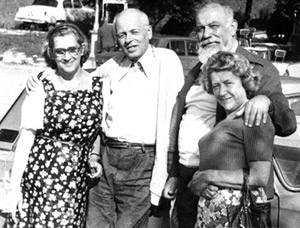 | Елена Боннэр, Андрей Сахаров и Лев Копелев со второй супругой Раисой Орловой, в соавторстве с которой он написал книгу «Мы жили в Москве» |
