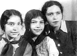 | Первая жена Копелева Надежда Колчинская с дочерьми Майей и Леной, 1949 год |