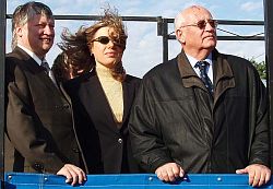 ![]() Анатолий Карпов, венгерская шахматистка Жужа Полгар и Михаил Горбачев |