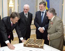 ![]() Как и гроссмейстер, Президент тоже должен уметь играть и белыми, и черными, и вовремя сделать ход конем... Фото УНИАН |