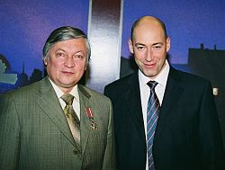 ![]() Анатолий Карпов — Дмитрию Гордону. «В этом году 45 лет, как я впервые приехал в Украину. С тех пор прекрасно к этой земле отношусь и рад, что она отвечает мне взаимностью» |