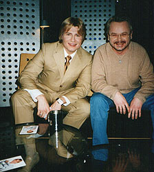 Вообще, привезти гостя на программу (особенно гостя, так сказать, звездного) порой становилось непростой задачей. Ждали Семена Стругачева, он же Лева Соловейчик из "Особенностей национальной охоты-рыбалки". Организаторы гастролей появились у нас пораньше, чтобы успокоить - Сеня оказался непьющим вопреки экранному имиджу и вполне управляемым. В таких случаях часто звучит слово "адекватный". "Отобедает, - сказали нам, - и приедет".