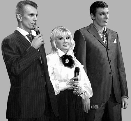 ![]() Первые лица "Интера": Валерий Хорошковский, Светлана Плужникова и Влад Ряшин ![]() Самый умный кулинар Борис Бурда большую часть вечера провел в гордом одиночестве, предаваясь своему любимому увлечению - дегустации разнообразных блюд и напитков ![]() Светлана Леонтьева: "Неужели девять лет прошло? А кажется, все было вчера..." ![]() Главный опер канала Константин Стогний: "Была бы программа, а статья Уголовного кодекса на нее найдется!" ![]() Пигмалион и Галатея - Игорь Кондратюк и Наталья Валевская ![]() По стакану апельсинового сока за "Ключевой момент". Редактор программы Галина Храпко и ее ведущая Наталья Сумская ![]() Таисия Повалий посвятила песню "Два кольори" памяти своего друга Игоря Плужникова ![]() Ирина Билык пела о любви, а в это время о любви думал Дмитрий Коляденко ![]() Владимир Гришко: "Ваше здоровье!" ![]() "Ударник труда" Игорь Лихута, как всегда, был в отличном настроении и зажигал по-черному |