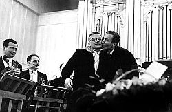 ![]() Москва, декабрь 1962 года, премьера 13-й симфонии («Бабий Яр») Дмитрия Шостаковича, написанной под впечатлением стихотворения Евгения Евтушенко |