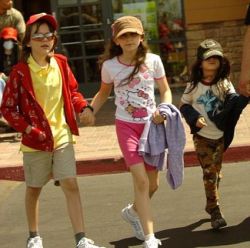 ![]() На очередную прогулку Майкла Джексона сопровождали его дети: 11-летний Принс Майкл, 10-летняя Пэрис Кэтрин и пятилетний Принс Майкл Второй |