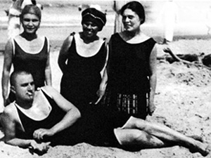 | Владимир Маяковский, Эльза Триоле, Раиса Кушнер и Лиля Брик в Германии на курорте Нордернее, 1923 год |