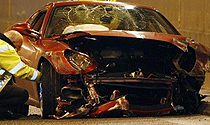 Боясь опоздать на тренировку, 23-летний спортсмен несся как безумный на своем «феррари». В итоге не справился с управлением и на полной скорости врезался в заградительный барьер автомобильного тоннеля. Удар оказался такой силы, что одно из колес машины отлетело метров на 70, а от капота почти ничего не осталось. Роскошный «феррари» стоимость 300 тысяч долларов ремонту и
