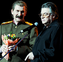 | Федор Добронравов в роли Сталина с худруком Театра сатиры Александром Ширвиндтом. «Александр Анатольевич — удивительно мягкий и интеллигентный человек» |