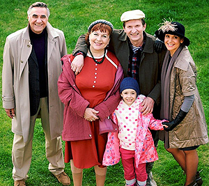 | Анатолий Васильев, Татьяна Кравченко, Федор Добронравов, Людмила Артемьева и Ульяна Иващенко в одном из самых популярных телесериалов «Сваты» |