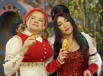 | Андрей Данилко в роли Красной Шапочки и ее Мачеха Лолита |