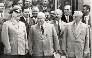 | Георгий Жуков, Алексей Косыгин, Никита Хрущев, Вячеслав Молотов, Николай Булганин и другие, середина 50-х |