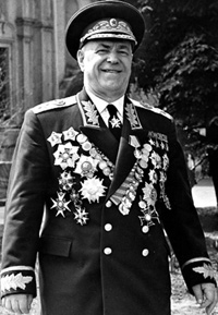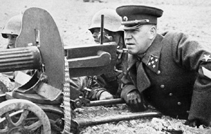 | Маршал Жуков — четырежды Герой Советского Союза, кавалер двухорденов «Победа», множества других советских и иностранных орденов и медалей |
