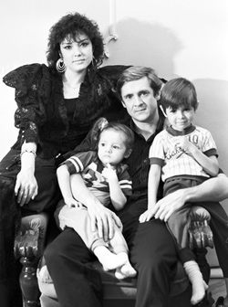 | Владимир Бессонов с супругой Викторией — гимнасткой- «художницей», чемпионкой мира 1979 года в групповых упражнениях, дочерью Аней и сыном Сашей. Киев, середина 80-х. Фото «ИТАР-ТАСС» |