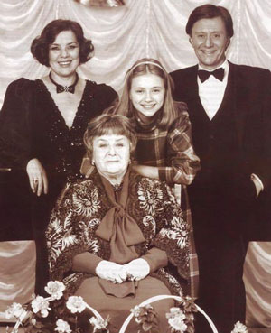 | Андрей Миронов с матерью Марией Владимировной, женой — актрисой Ларисой Голубкиной и дочерью Машей |