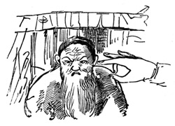 ![]() "Бедный поп подставил лоб... А Балда приговаривал с укоризной: "Не гонялся бы ты, поп, за дешевизной". Рисунок А. С. Пушкина |