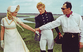 | С исполнителями главных ролей фильма «Метель» Валентиной Титовой и Олегом Видовым на съемках, 1964 год |