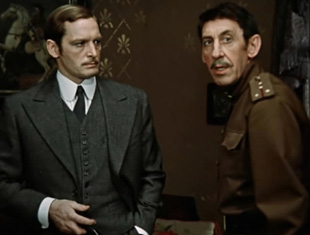 | С Василием Лановым (Леонид Шервинский) в картине «Дни Турбиных», где Басов был режиссером, сценаристом и исполнителем роли Виктора Мышлаевского, 1976 год |