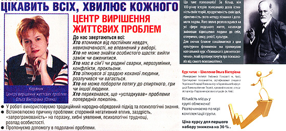 Реклама сперва «гадалки ОЛЯНЫ», а затем «психолога» Ольги ШКОЛЕНКО много лет выходила на страницах львовских газет «Експрес» и «Добрий лікар». До последнего времени работала во Львове в бизнес-центре «LEMBERG» по адресу: ул. Б. Хмельницкого, 176, комната 220 и проживала помимо Киева во Львове по улице Панчишина, 7, кв. 7.