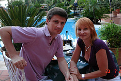 ![]() Один из самых популярных телеведущих Игорь Кондратюк — физик , кандидат биологических наук, член клуба «Что? Где? Когда?». С женой Сашей на отдыхе в Испании |