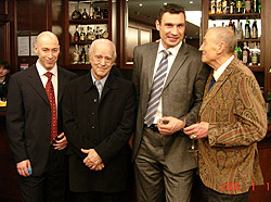 ![]() На одном из приемов с Дмитрием Гордоном, Виталием Коротичем и Виталием Кличко. Влюбленный в Кличко Евтушенко прослезился, когда Виталий вдруг начал читать наизусть его малоизвестные стихи |