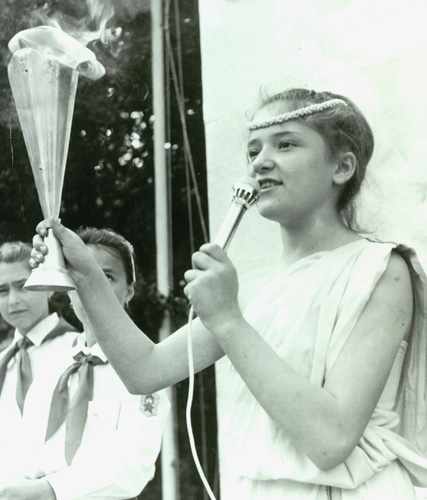 ![]() 11 лет. Победительница спортивных соревнований Наташа Могилевская открывает школьную олимпиаду |