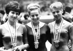 ![]() Сильнейшие спортивные гимнастки 50-60-х годов прошлого века: Тамара Манина, Полина Астахова и Лариса Латынина |