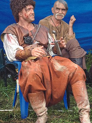 ![]() С Владимиром Вдовиченковым на съемках фильма «Тарас Бульба». Хотинская крепость |